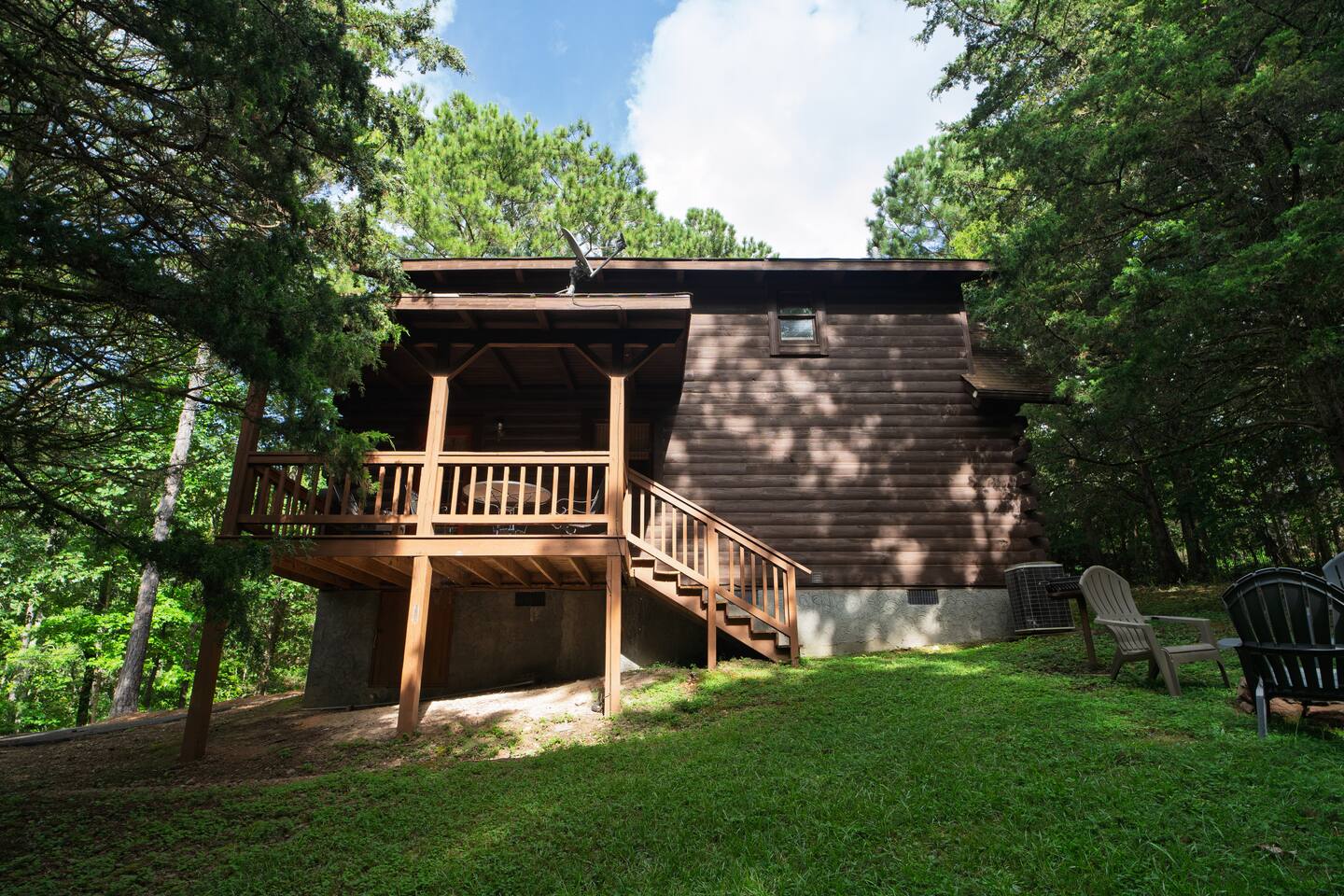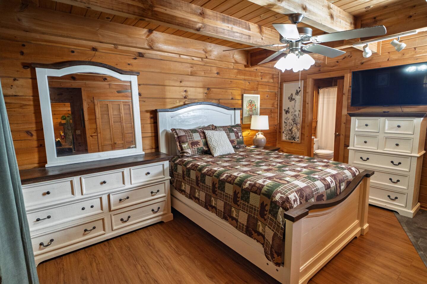 Come relax in this 2 bedroom, 2 bath cabin. We have 3 queen sized beds for you to comfortably enjoy.