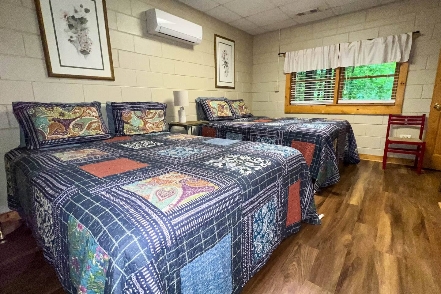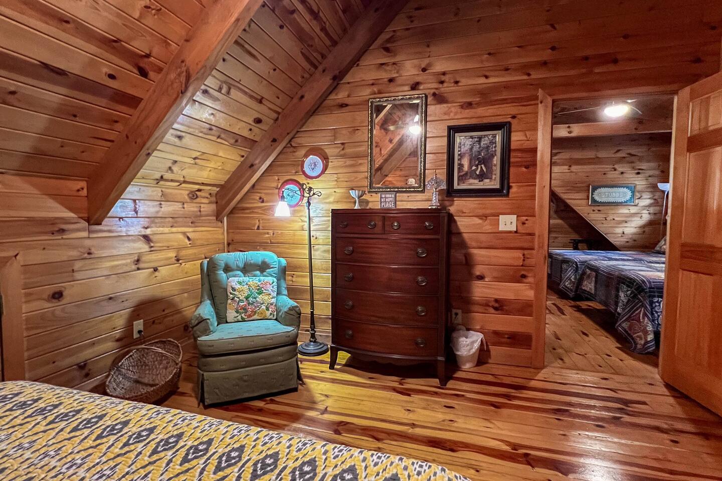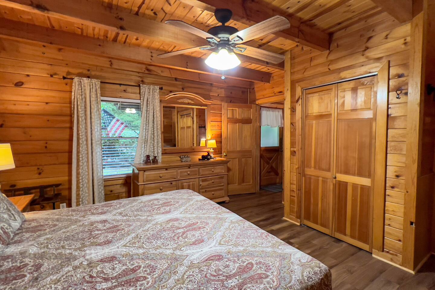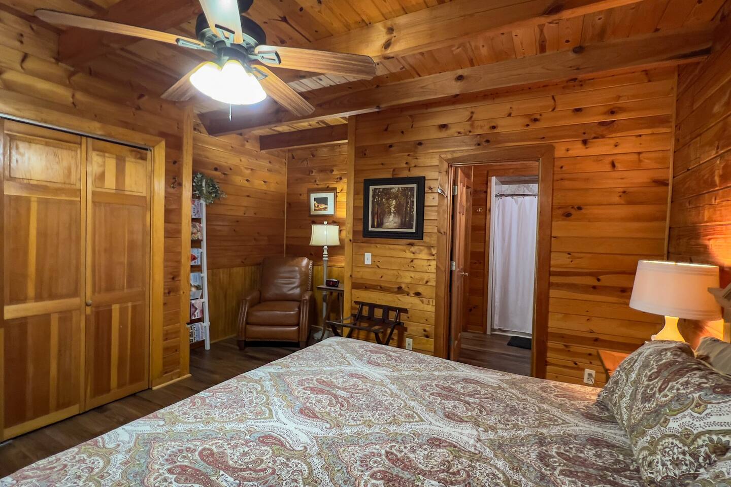 Log cabin sleeps 14 people with 3 bathrooms. Callaway Gardens is within 15 minutes from the cabin and so is the Roosevelt National historic site, “The Little White House.” Come relax on the back porch and enjoy this great vacation spot. Our cabin is perfect for families who want to spend time together. The kitchen is stocked with pots, pans, and a KEURIG. There are 2 king size beds, 4 queen sized beds and one double bed.